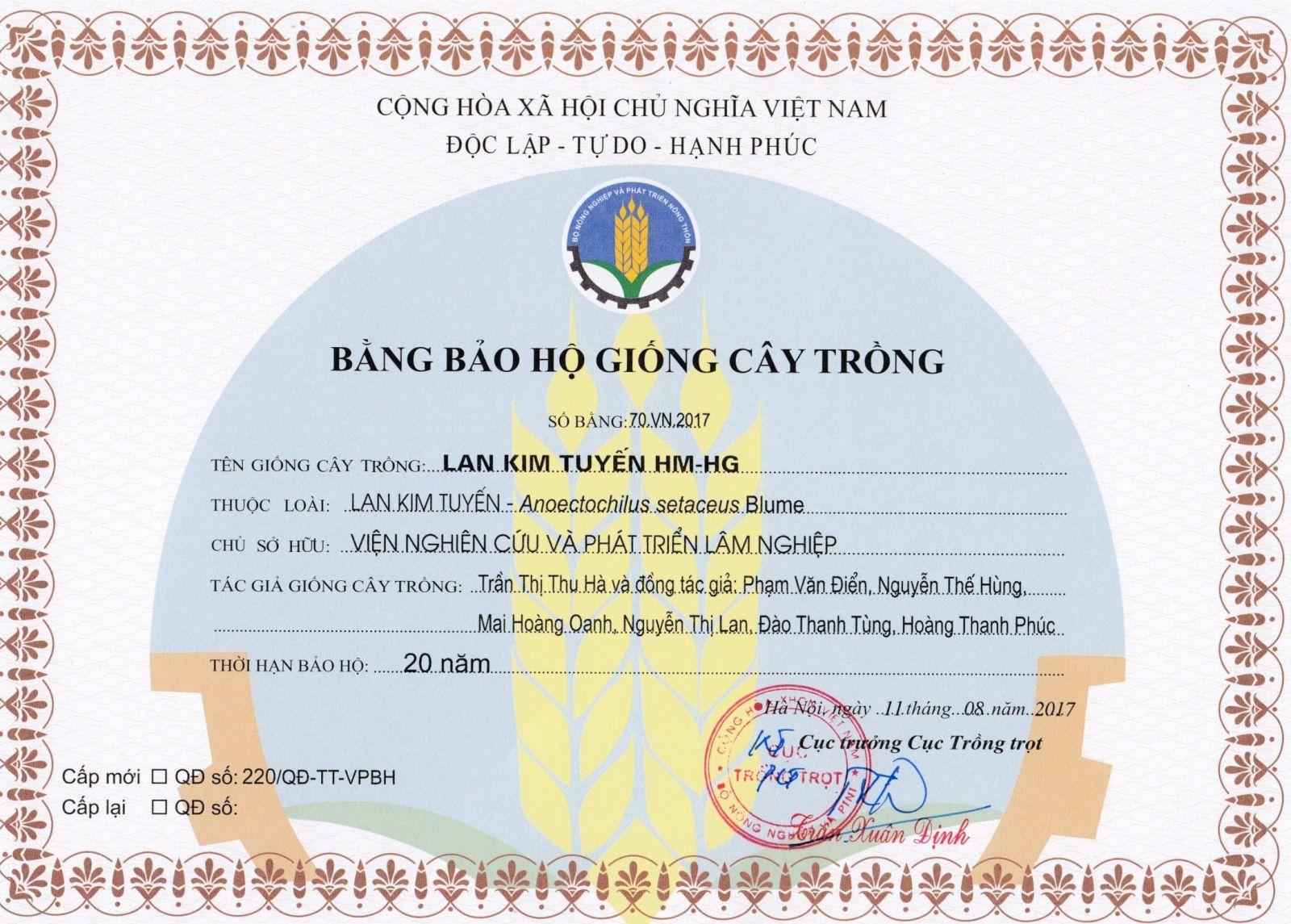 Bằng bảo hộ giống cây trồng Lan kim tuyến
